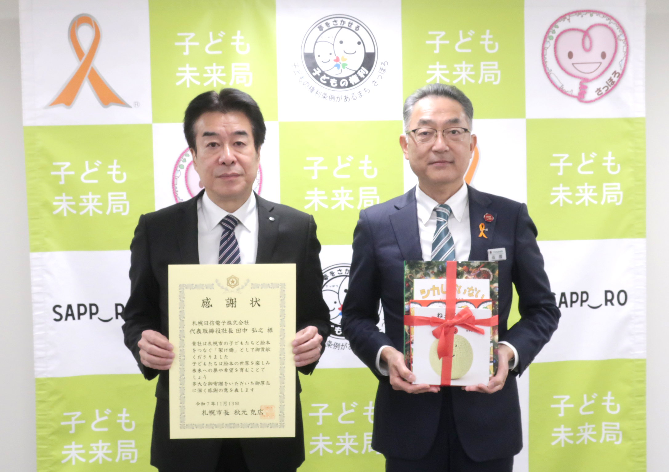 それに伴い、2024年12月12日(木)に絵本の寄贈および感謝状贈呈式が執り行われ、札幌市より感謝状を