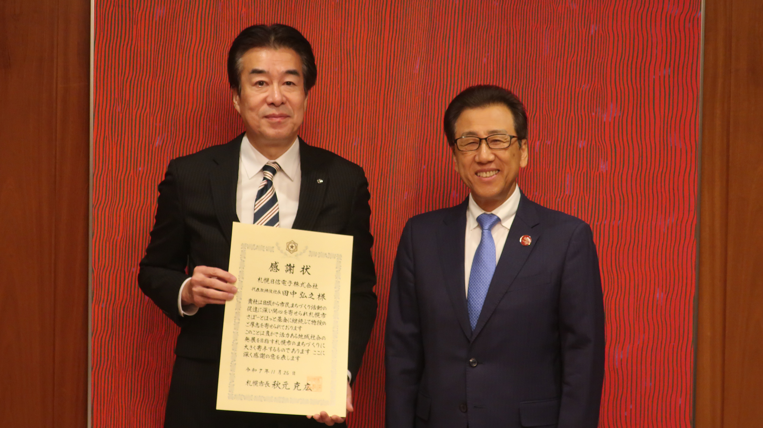 当社は札幌市への地域貢献として、冠基金「札幌日信電子 まちづくり応援基金」への追加寄付を行いました。